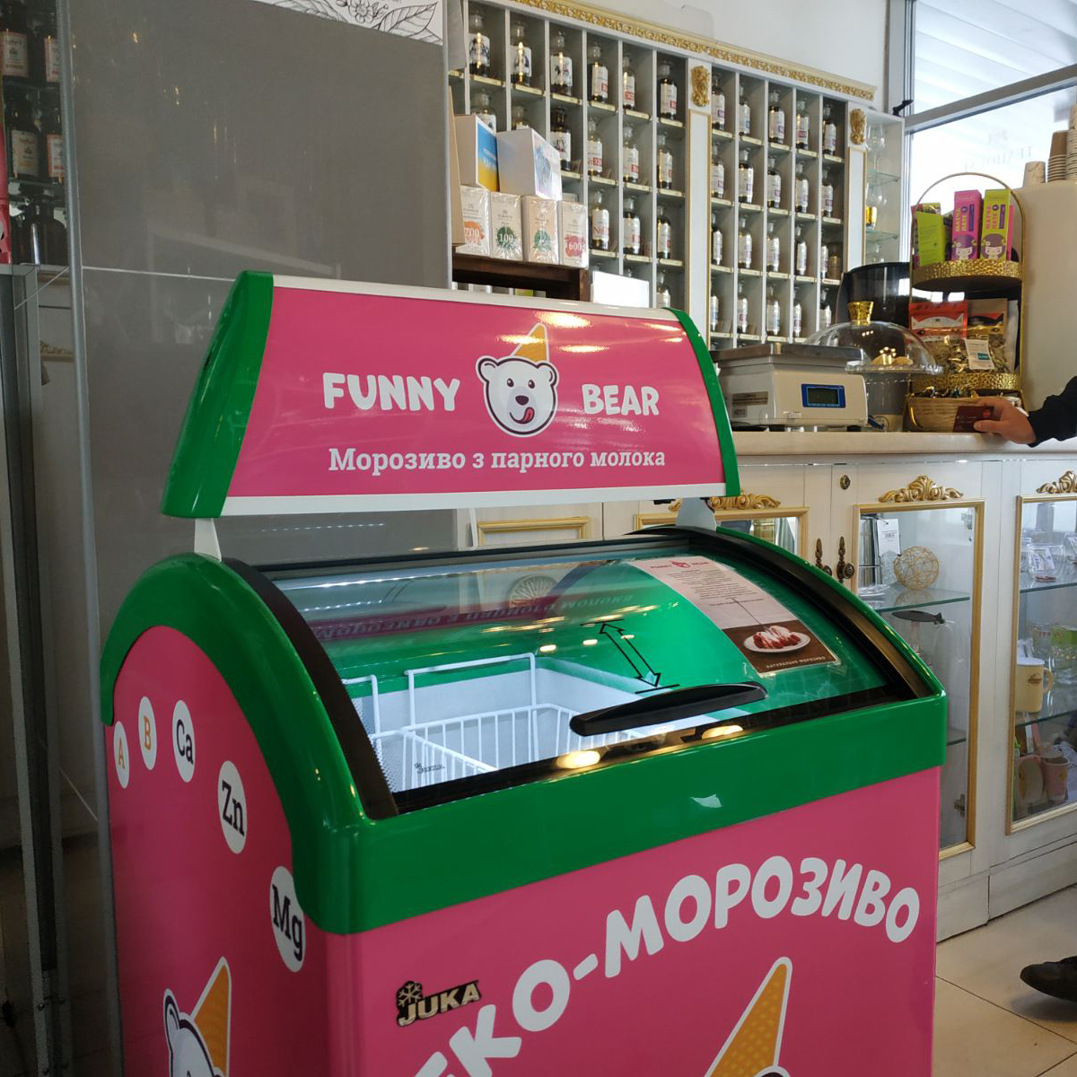 Розроблене за орігінальною фірмовою рецептурою 60 років, 20 століття, морозиво Funny Bear блискуче поєднало у собі старі традиції і новий сучасний підхід у виробництві , що зробило можливим створити ідеальне морозиво для малечі та дорослих.